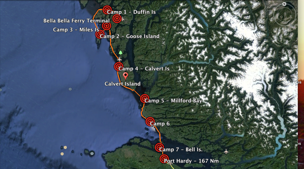I started working as a Sea Kayak Guide out of Vancouver Island over 10 years ago. In one of those early summers we (myself and a two other guides) bought charts for our dream trip. It was a trip that was accomplishable in about 8 days; a timespan that might accommodate the short periods of time we had off between working days. The route included some of the more rugged and committing coastline that the Central Coast of British Columbia had to offer; it was complete with plenty of headlands and open water crossings that might be friendly enough in calm to moderate conditions but that also have the potential to be extremely challenging, chunky sections of water if the wind, wave and tidal streams are not fully cooperative. The trip was to begin in Bella Bella, a small coastal community at 52 degrees latitude on the BC Central Coast that is home to the Helitsuk First Nation. The plan was to paddle the outside of the many archipelagos that dot the coastline southwards towards Calvert Island, around its western border, crossing to the BC mainland, south around Cape Caution and back to the Vancouver Island shores of Port Hardy.
